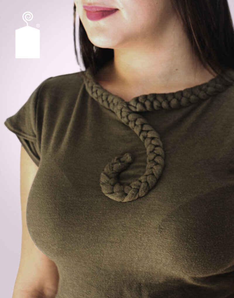 Blusa manga corta con cuello tipo óvalo con aplicación de trenza encontrarte.