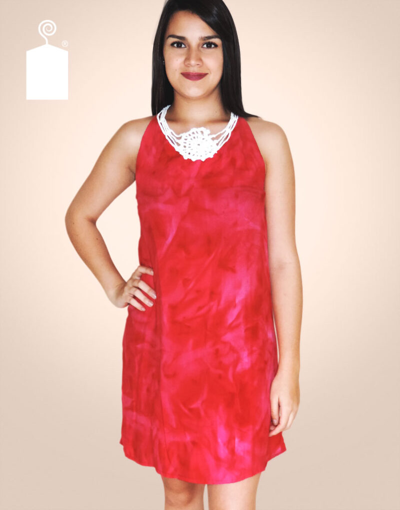 Vestido salida de playa con espiral blanca central elaborada a mano en técnica ganchillo.