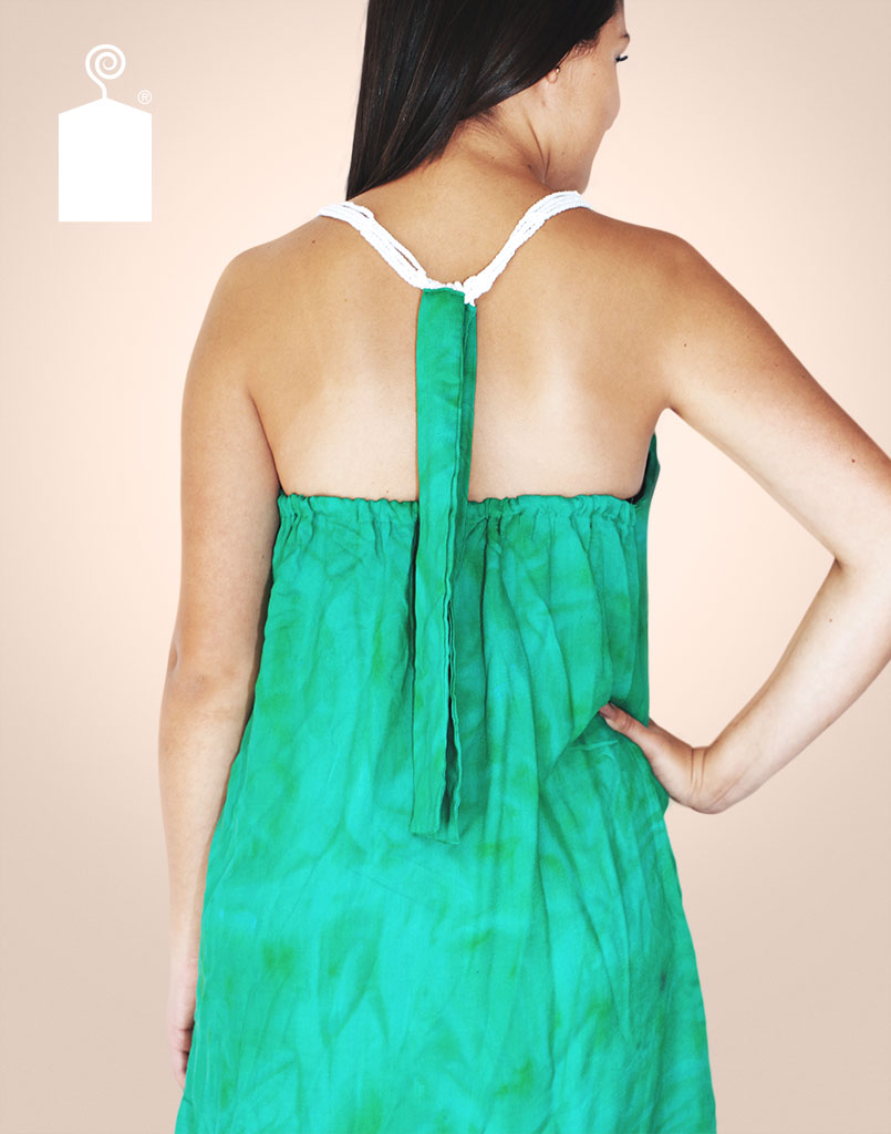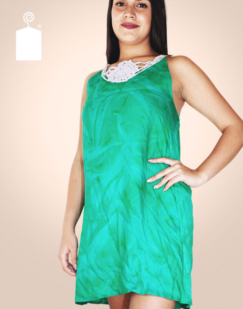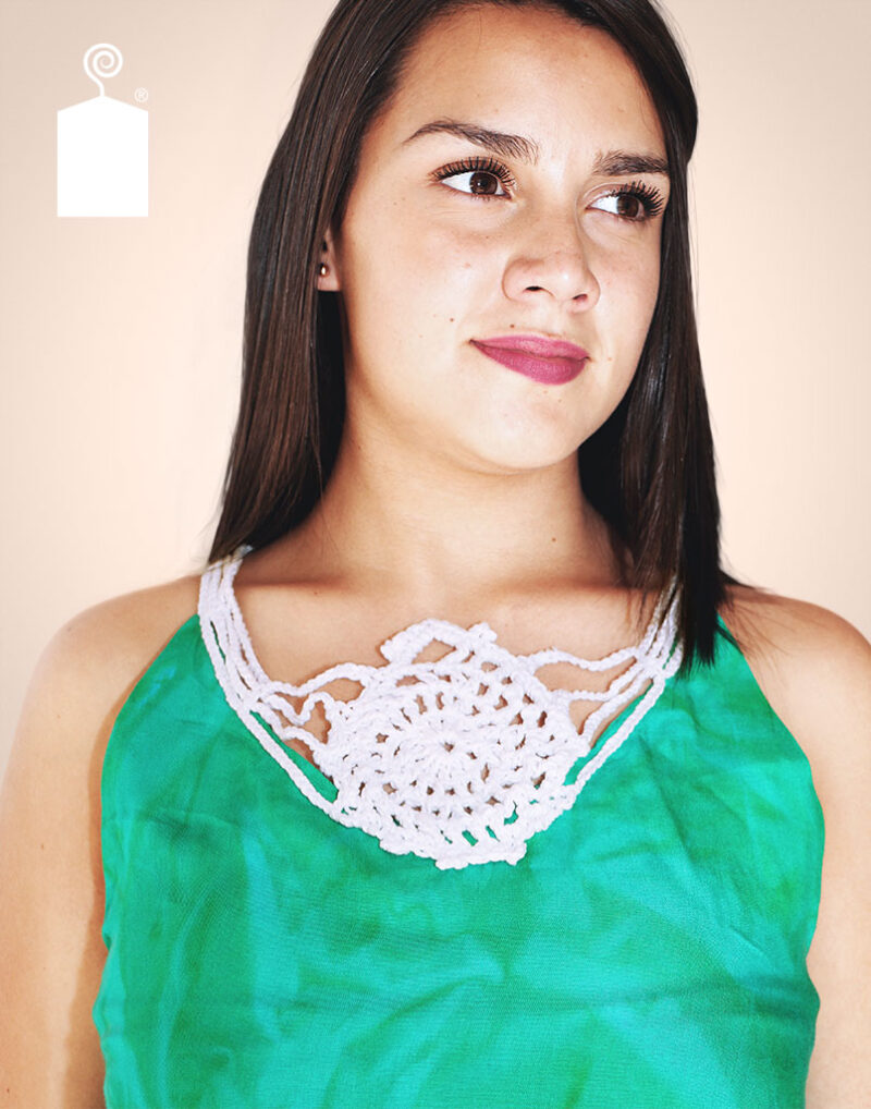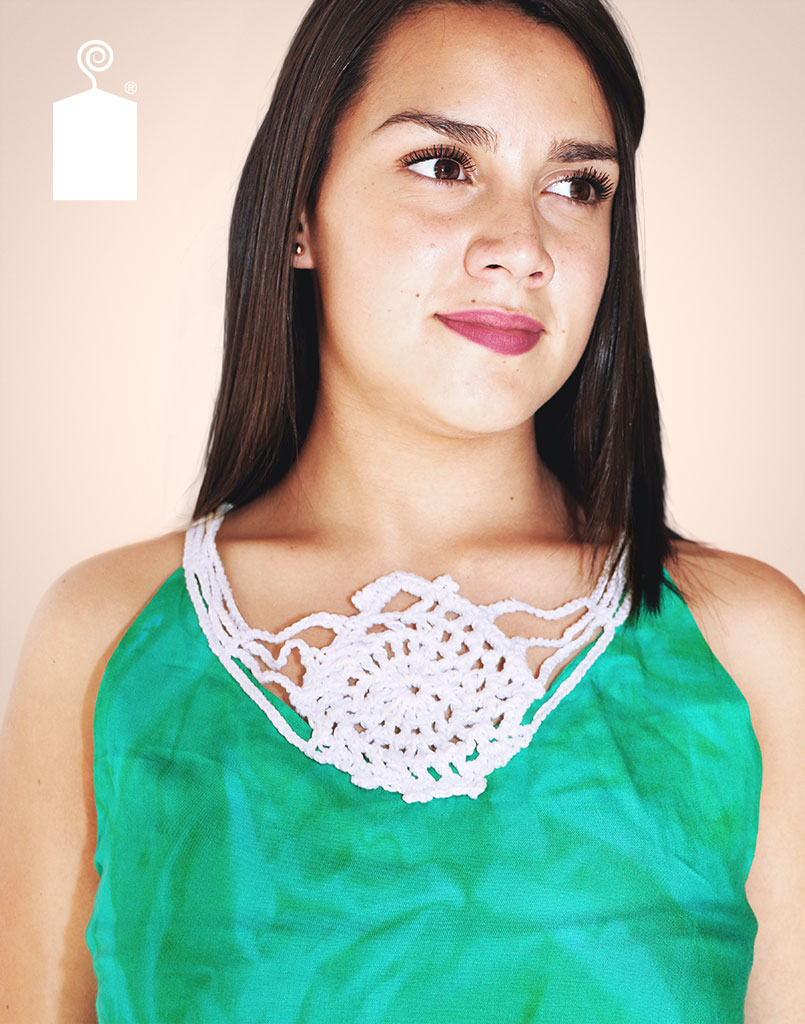 Vestido salida de playa con espiral blanca central elaborada a mano en técnica ganchillo.